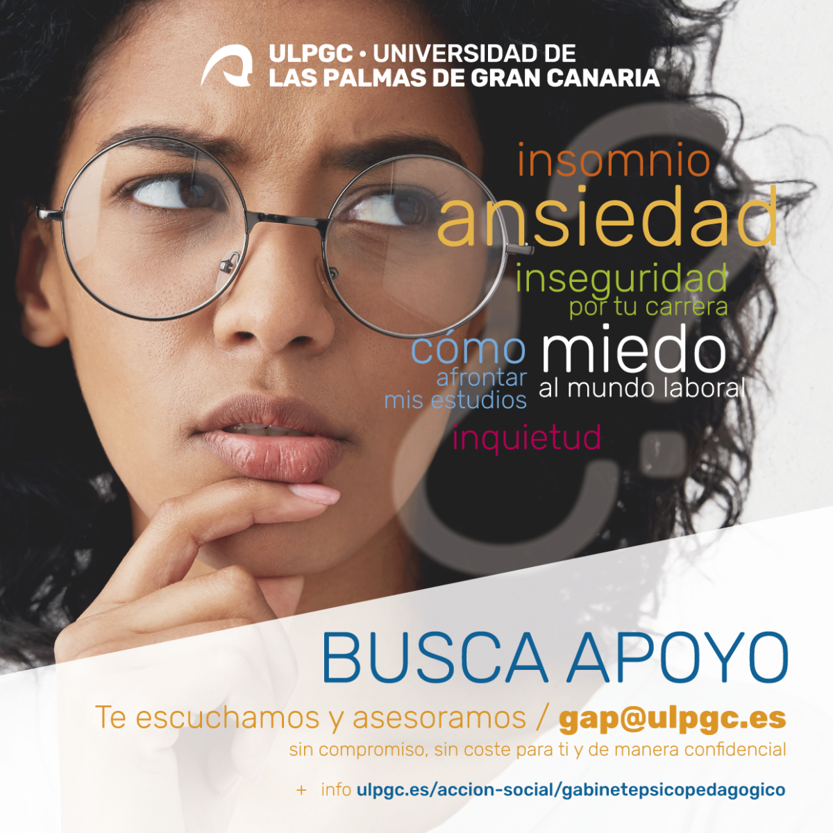 El Gabinete de Atención Psicopedagógica está dirigido al estudiantado de la Universidad de Las Palmas de Gran Canaria, de grado y posgrado y al profesorado con estudiantes que presentan necesidades de asesoramiento en el ámbito psicopedagógico, con el fin de dotarles de recursos didácticos y psicosociales que contribuyan a afrontar de forma exitosa los retos académicos y profesionales.